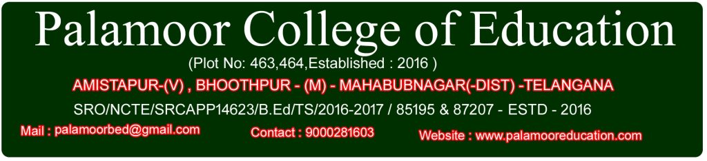 About Us:-PALAMOOR COLLEGE OF EDUCATION It has the reputation for maintaining academic standards and values the college puts in Hard work with Honesty and with the sole aim of preparing competent teacher to meet the new challenges of the changing society.