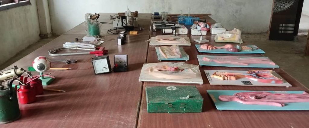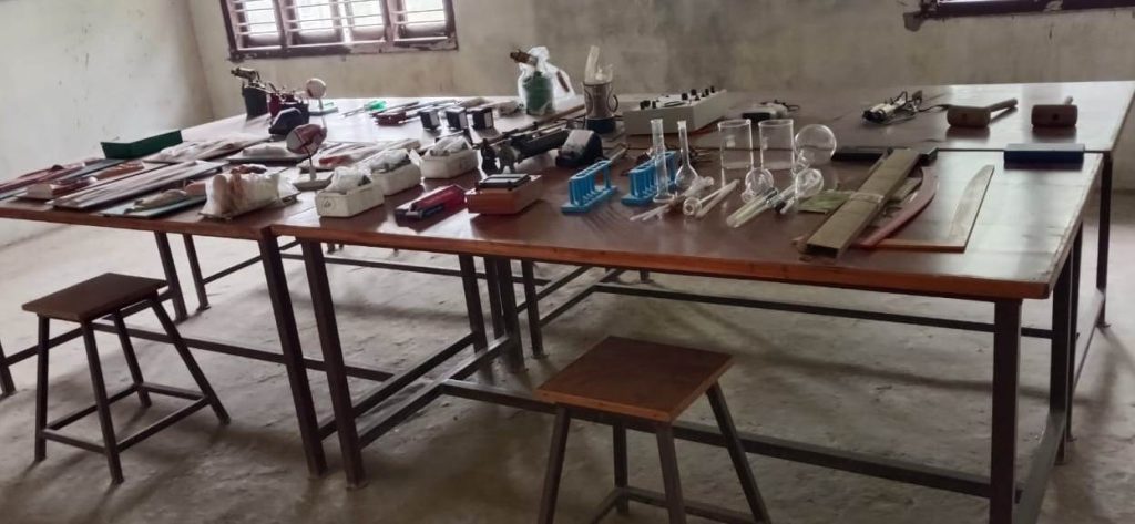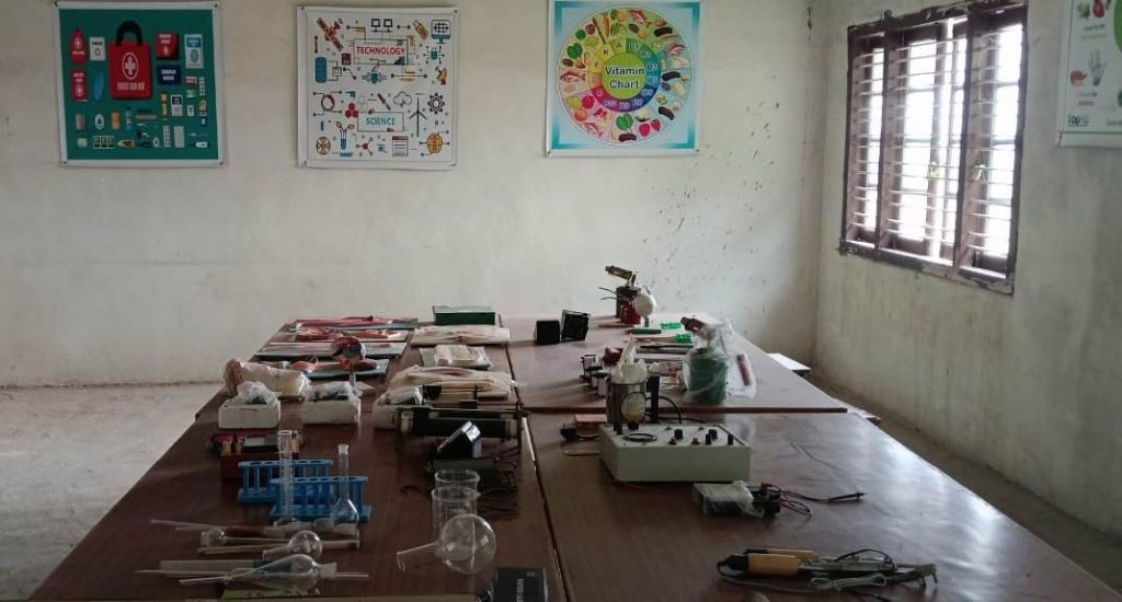 Learning by doing is the one of the cardinal principles of teaching science. For an effective and efficient teaching in science ad good laboratory with necessary equipment is essential. We do not aim at stuffing the minds of the pupils with mere facts of science but at developing in them the application ability, scientific attitudes, interests, appreciation etc. these can be achieved only if the students get the opportunities to work with their own hands in an atmosphere witch pervades in science teaching. The science lab consist of multiple sets of science apparatuses required to perform and demonstrate all the experiments prescribed in the secondary and senior secondary classes in physics , chemistry and biology.