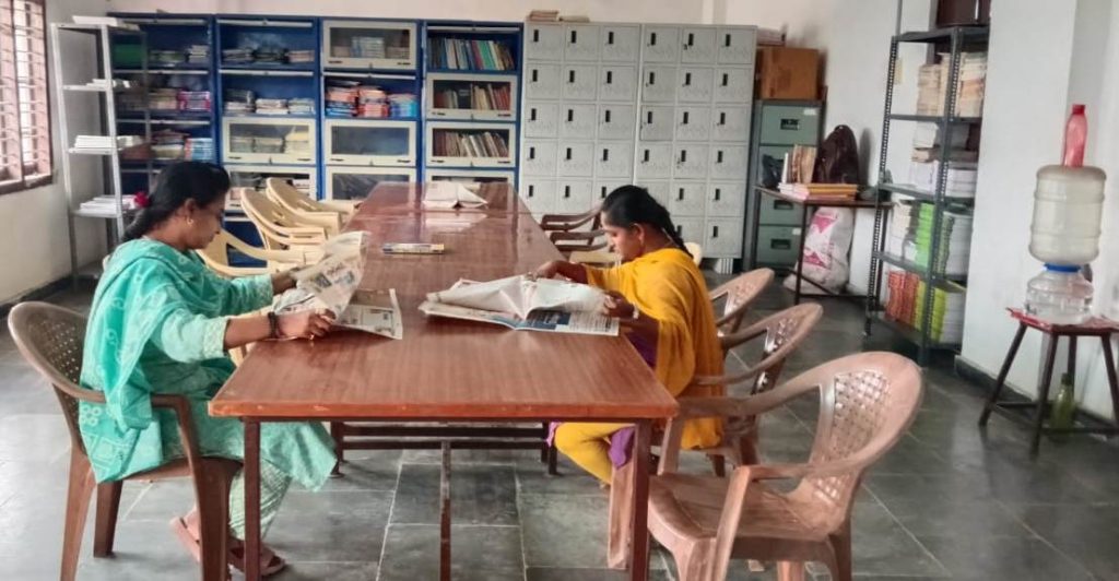 are prescribed every year .The collection of books are continuously up dated every year. An added facility to the college library is the availability of the book bank, the students who cannot posses their personal copies of text books from the Book bank section and return at the end of the year.